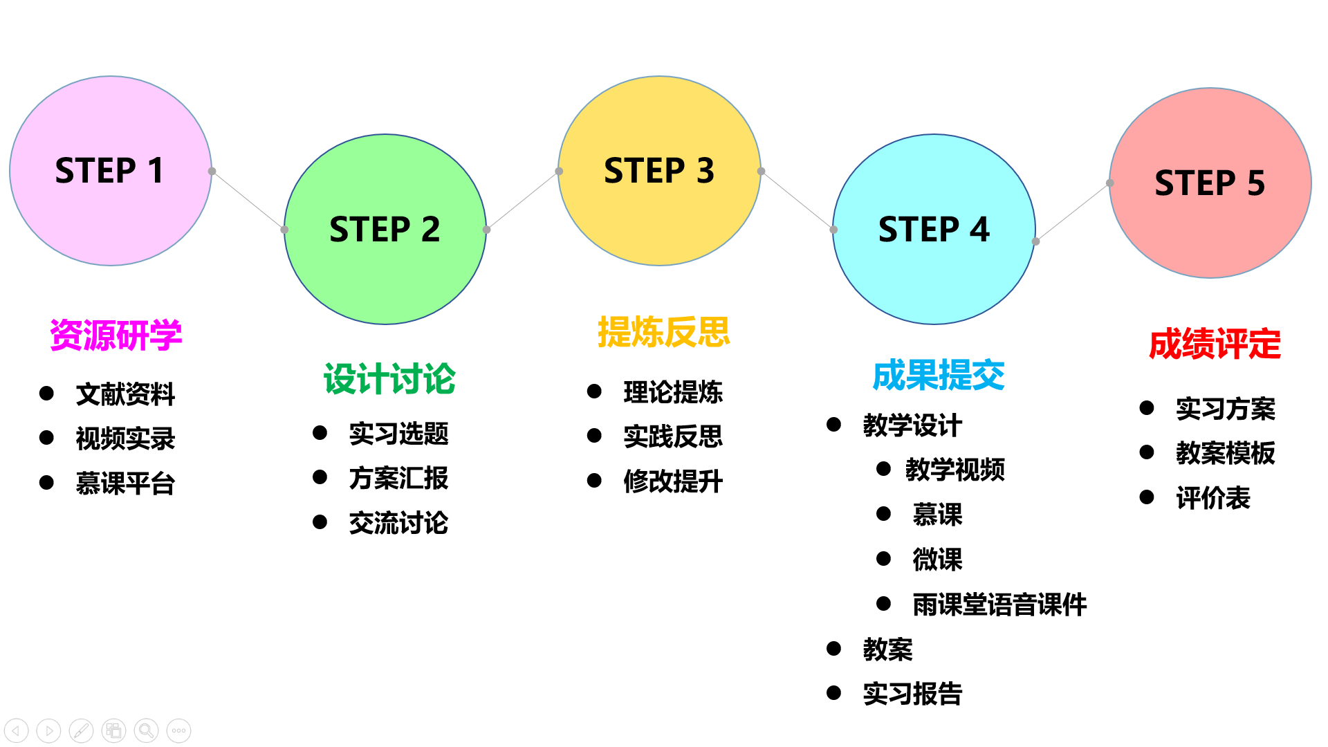 专业教育实习是一个完整的教学体认过程,员工经过前期的学习积累、交流讨论、提炼修改,最终需要落实到纸笔,落实到行动,即撰写一份规范、完整的教案,并将教案内容进行实施,形成教学设计成果。学院结合疫情下现代化教育技术及课程平台的应用现状,进一步丰富教学设计成果形式。员工可根据自己的特点特长、居家网络情况、设备技术水平,从录制授课视频,制作慕课或微课,在超星、唐风汉语等课程资源平台建课,制作雨课堂语音课件,为外国职工汉语班进行线上教学(模拟)等多种授课方式中选择其一,完成设计。随后通过回顾、总结、反思教育实习全过程,撰写实习报告。教学成果从“设计”到“实施”,从“实施”到“反思”,逐步逐层培养员工教学实践技能,落实教育实习总体目标。
