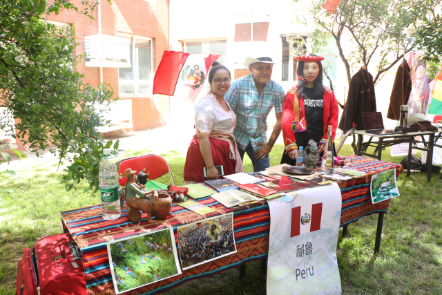 国际教育学院第一届“世界文化节”容纳了各国风情,让在场者“不出北体,畅游世界”。文化节根据不同参展国家设立了多个展区,参与者可以通过详细的宣传资料、精心设计的展棚和别具特色的展板了解当地风俗文化,更现场品尝各国美食,参与各国传统游戏,与世界各地的职工进行亲密互动。舞台表演区则有来自厄瓜多尔、马来西亚、秘鲁、玻利维亚、越南和中国台湾的员工进行歌舞表演,将现场气氛一次次推向高潮。