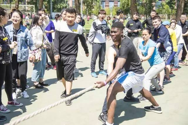 2017年4月26日,由国际教育学院和武术学院联合主办的「武文弄墨」趣味运动会在篮球外场举行。中外员工进行了一系列中国民族民间传统体育项目的比拼:滚铁圈、投壶、踢毽子、跳大绳、逃脱束缚、拔河等。同学们在体验中国民间传统体育项目中增进了友谊。