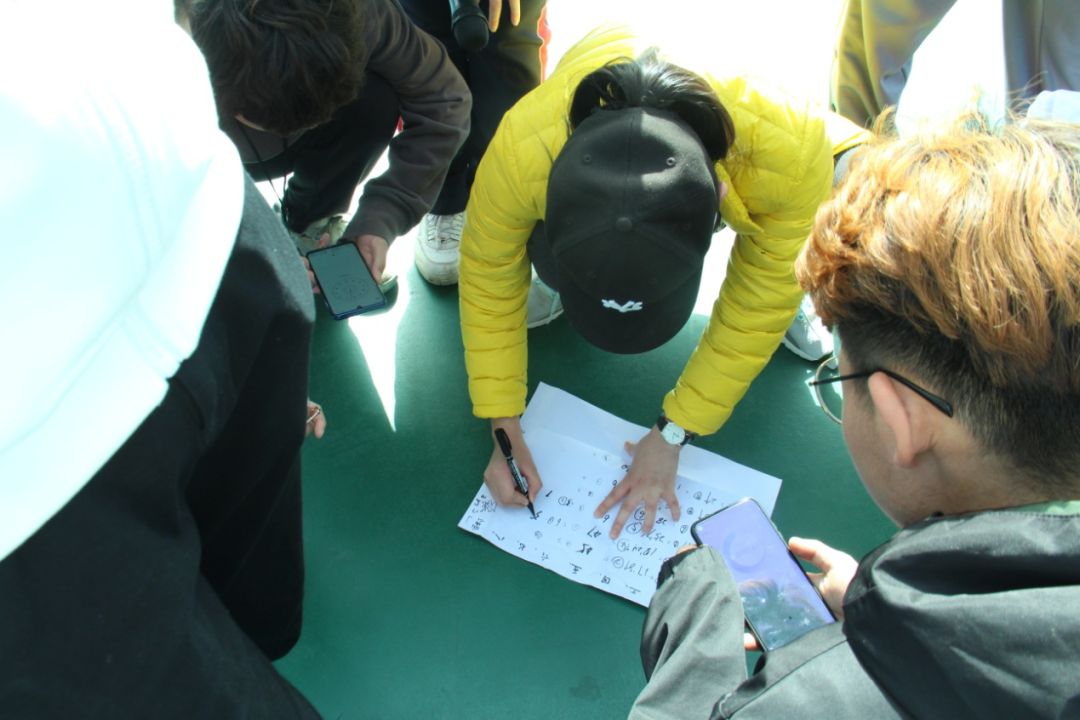 在工作人员的指挥下,人文和武院的参赛选手们迅速分成了6队。戴上了本队特有颜色的手环,就是同队的兄弟姐妹了!