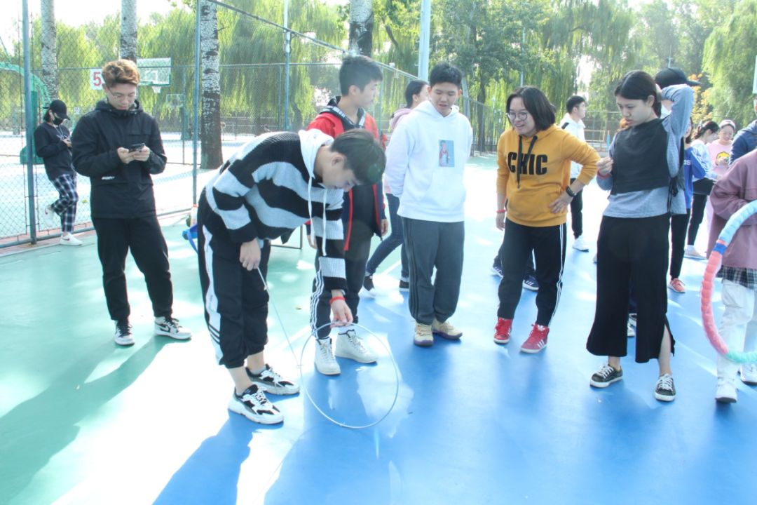 当铁圈与铁钩碰撞在一起,闪耀的是童年记忆的火花,同学们很快跃跃欲试。不过小小铁圈看着简单,实则对选手速度,力度和手法控制有着相当高的要求呢。有的同学很快跑了起来,有些同学则步履维艰。不过在大家的努力下,每个人都顺利地跑(走)了一圈。