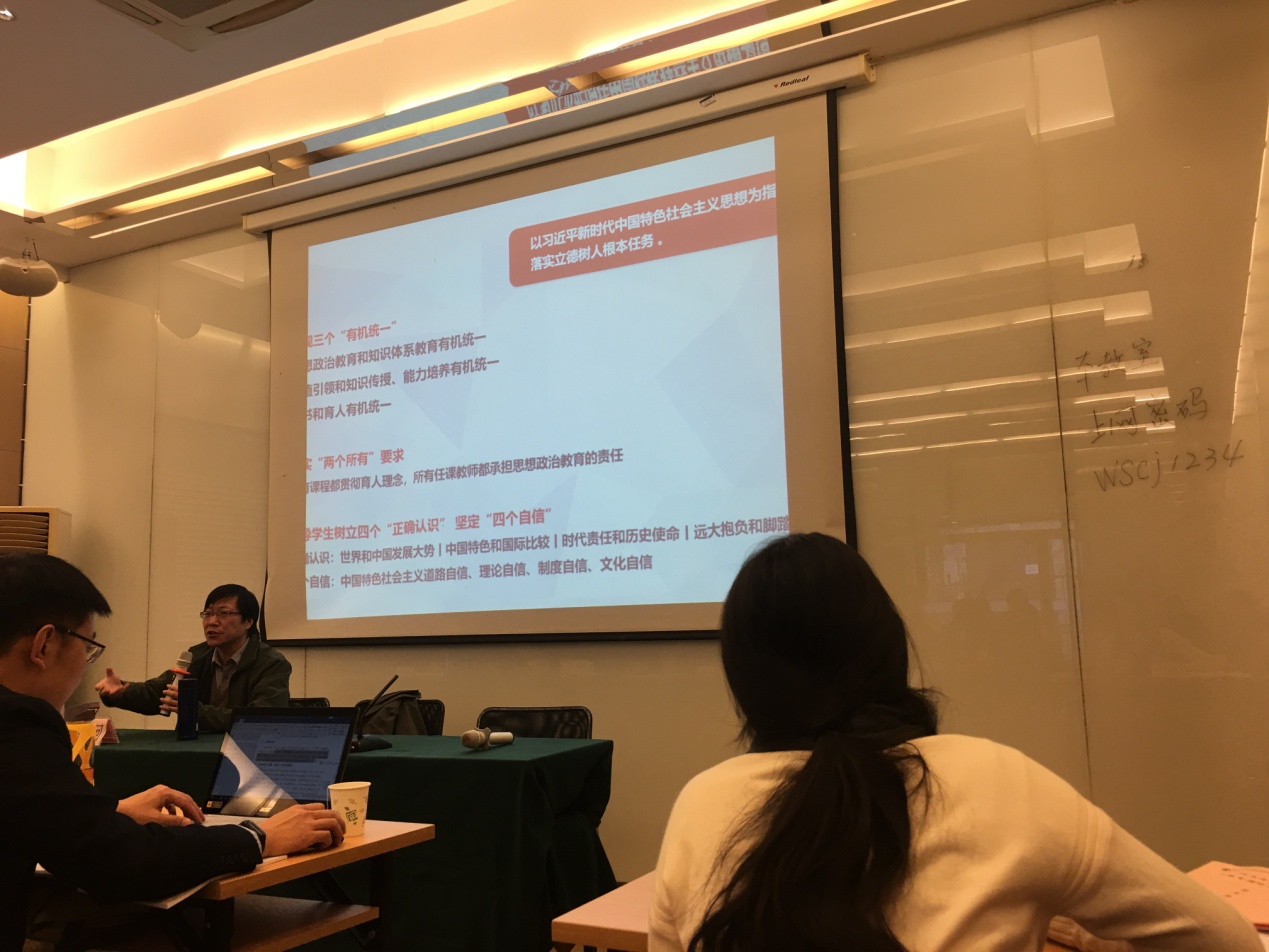 第四场报告来自复旦大学中国语言文学系段怀清教授,题为“中国现代文学名著选讲课程设计、员工研讨经验分享”的报告。段怀清教授认为《中国现代文学名著选讲》此课程具有通识性、人文性、艺术性、审美性。他提出“要构建特色通识体系,促进员工形成通识思维”、“‘以学为中心’组织教与学,培养员工学习力”、“多渠道促进师生互动”。