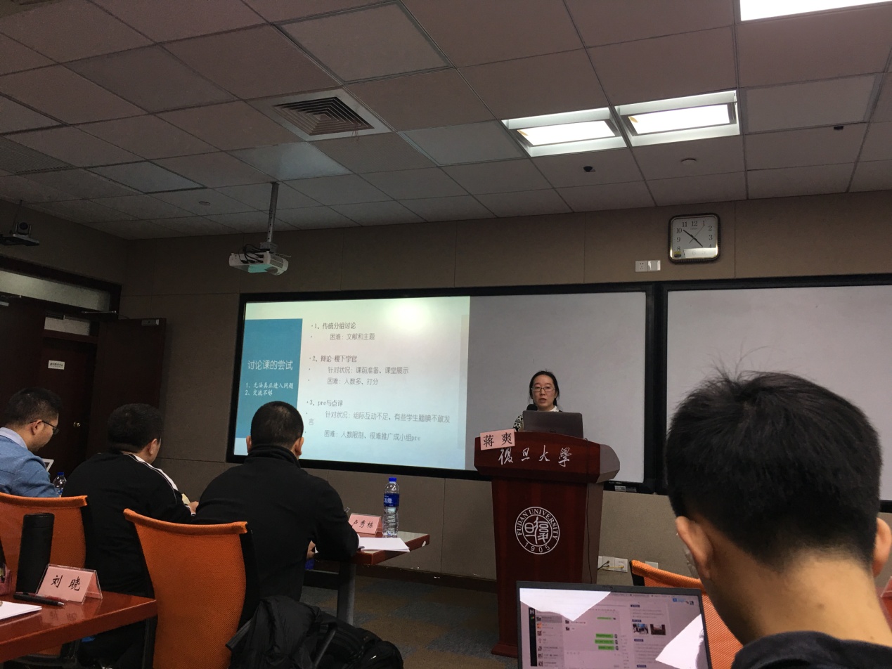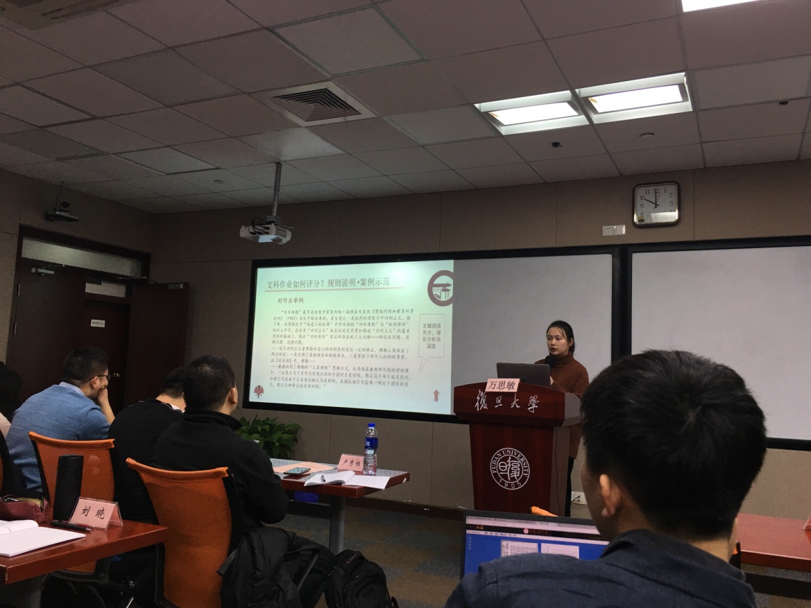 针对大学通识课程教学开展小班讨论中的助教制度,复旦大学通识中心在此次的课程培训中邀请了两名通识核心课程的优秀助教——“人权与法”课程助万思敏,“《论语》导读”课程助教蒋爽,对如何组织小班讨论、如何分组、如何对课后作业进行评分进行了细致地案例分享。