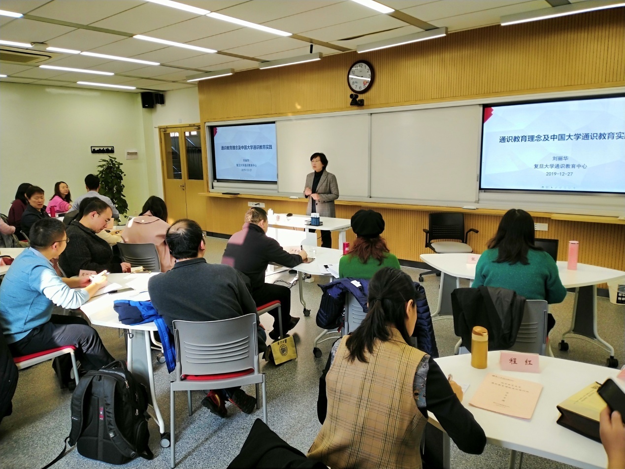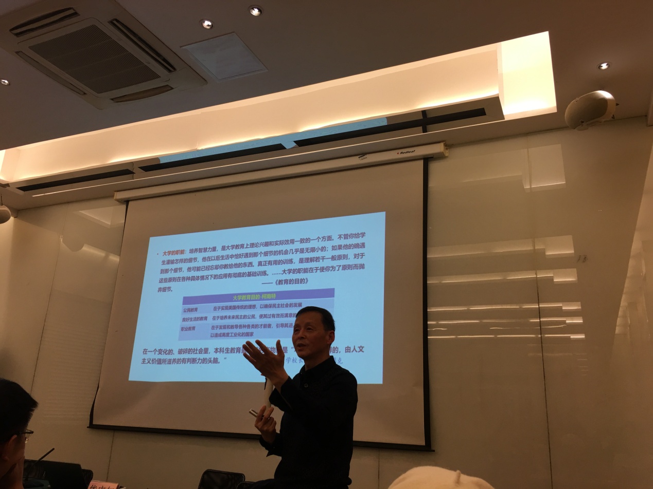 抵达上海当晚,老师们就投入到紧张的学习中来。复旦大学高等教育研究所熊庆年教授作了一场题为“我们为什么要推行通识教育”的讲座,主要围绕“谁是知识分子”、“大学的使命”、“通识教育的目标”、“通识教育与专业教育的关系”、“当代中国大学通识教育的使命”、“美国大学通识教育的发展历史”、“博雅教育、通识教育、自由教育”诸问题展开了交流与讨论。