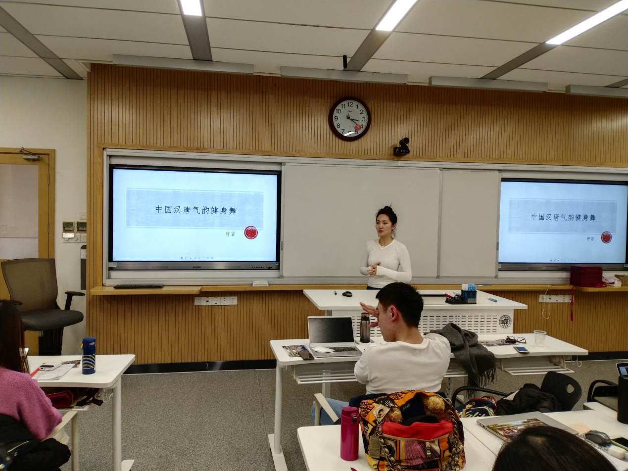 艺术学院许言老师汇报的题目是《中国汉唐气韵健身舞》