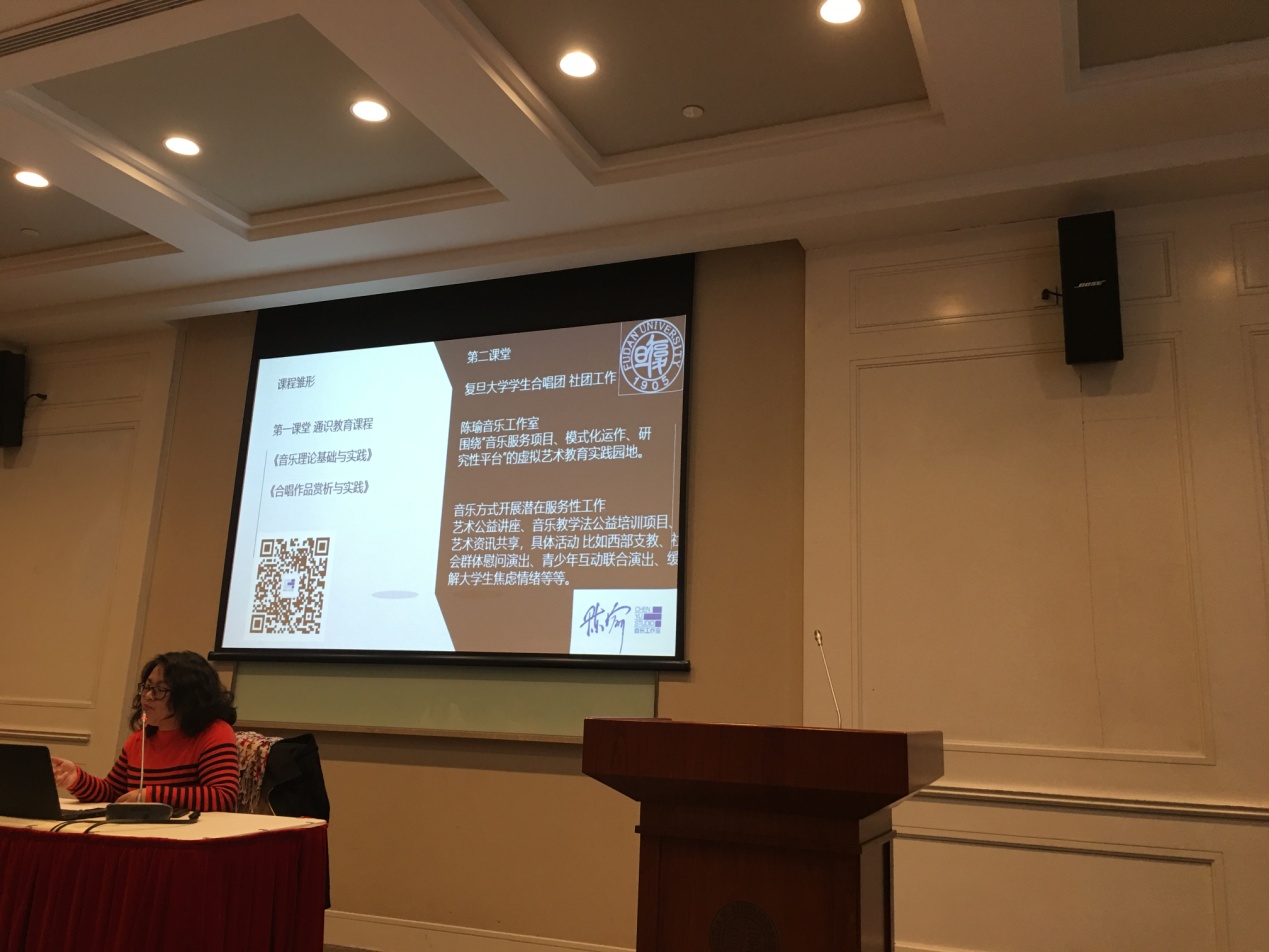 26日下午学习报告围绕“服务课程”,“第一课堂和第二课堂结合”课程的主题,分为三个部分:复旦大学艺术教育中心讲师陈瑜作题为“原本性音乐教育与社区服务教学经验分享”的报告。陈瑜老师促使员工掌握音乐教育的知识和技能,将音乐用于社区服务的实践,主要借鉴音乐疗法、叙事疗法、舞动疗法以及心理剧疗法等,将有民族民间特色的音乐作为进行课程教学的材料。强化服务型课程“知”与“行”元素相呼应。