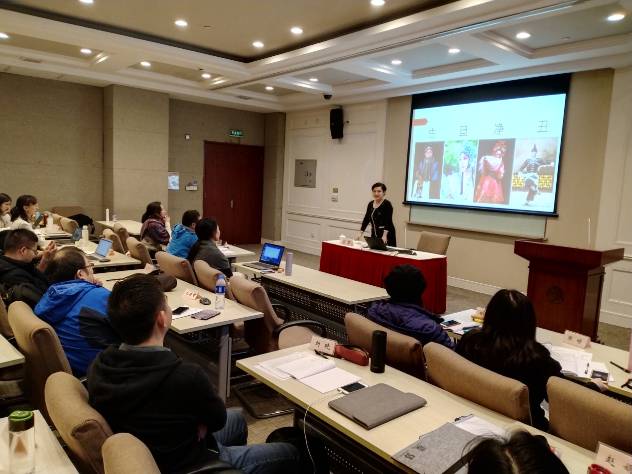 上海戏剧学院教授赵群老师作了题为“中国戏剧·京剧教学经验分享”的报告。赵群老师从艺术类课程教学设计的角度分享了教与学的经验。她提出国粹艺术京剧的通识课应该选择有代表性的人和事,用专业的形式演绎讲述;选择实例,有深度地导赏,而非迎合性简单介绍;课上介绍“一招鲜”,吸引员工课下按需探索。