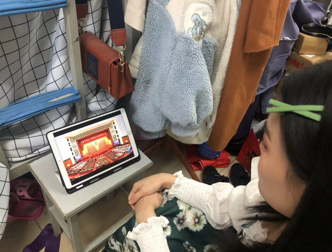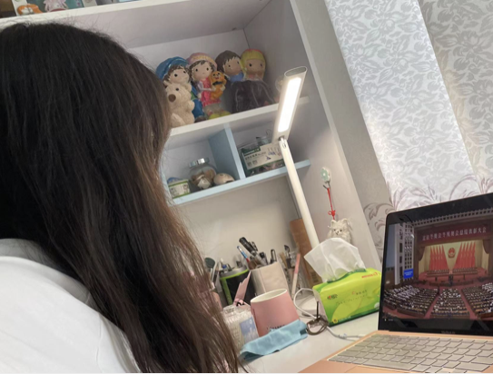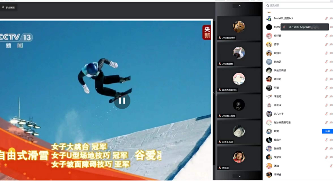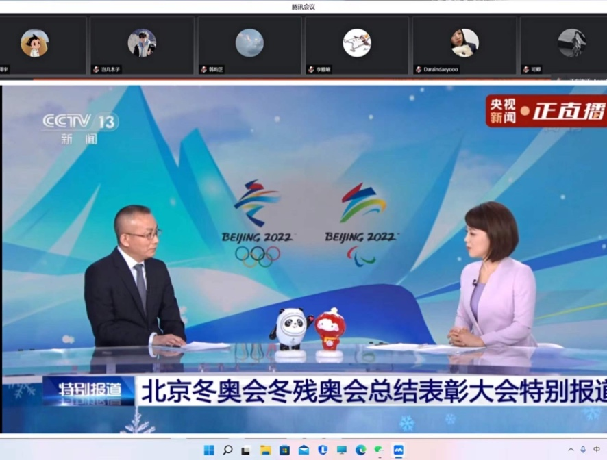 学习过程中,团支书先组织集体观看北京冬奥会、冬残奥会总结表彰大会回放。同学们参考学习文件在共享屏幕上认观看。