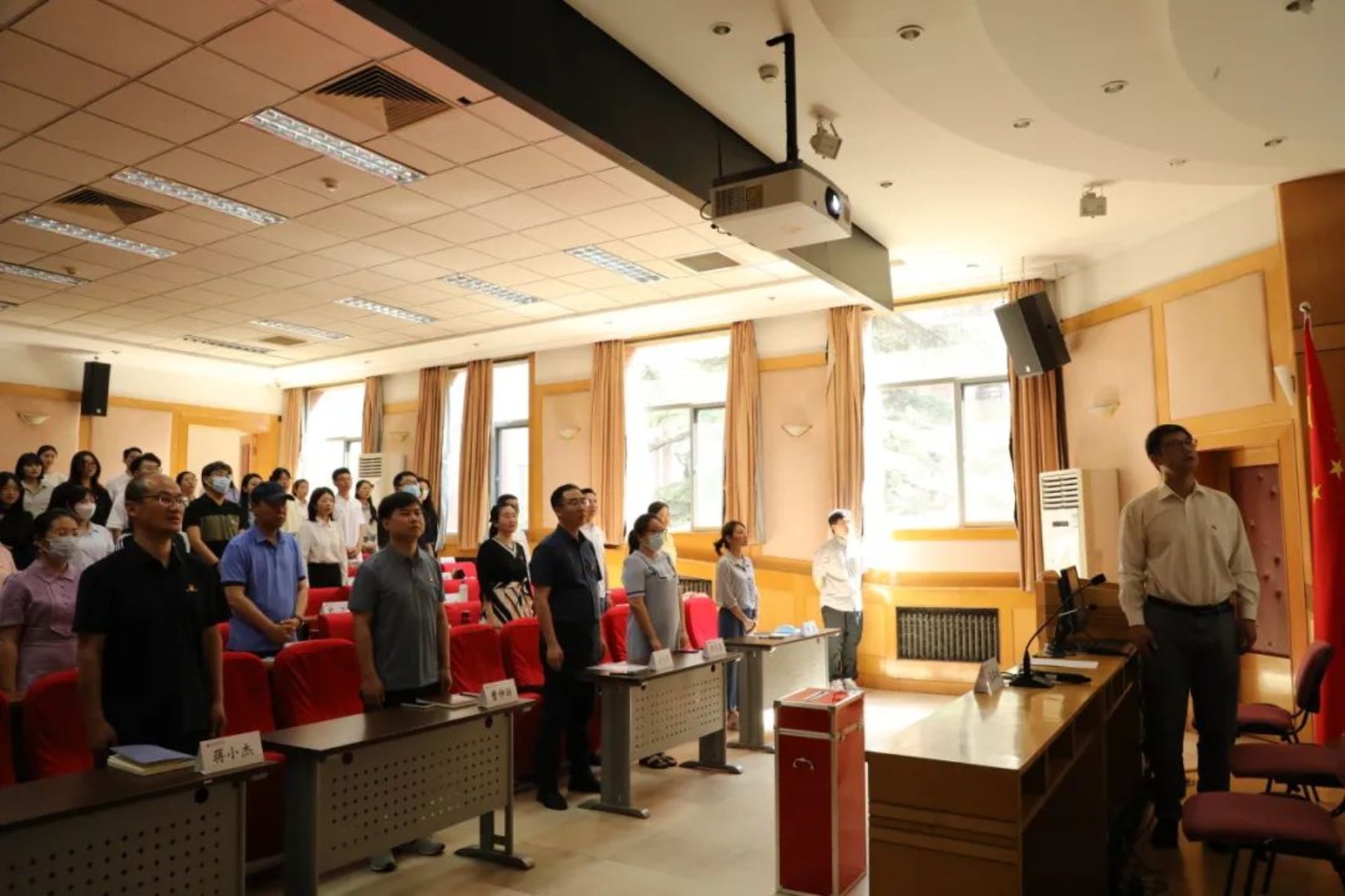 会议在全体党员高昂嘹亮的国歌声中开幕。