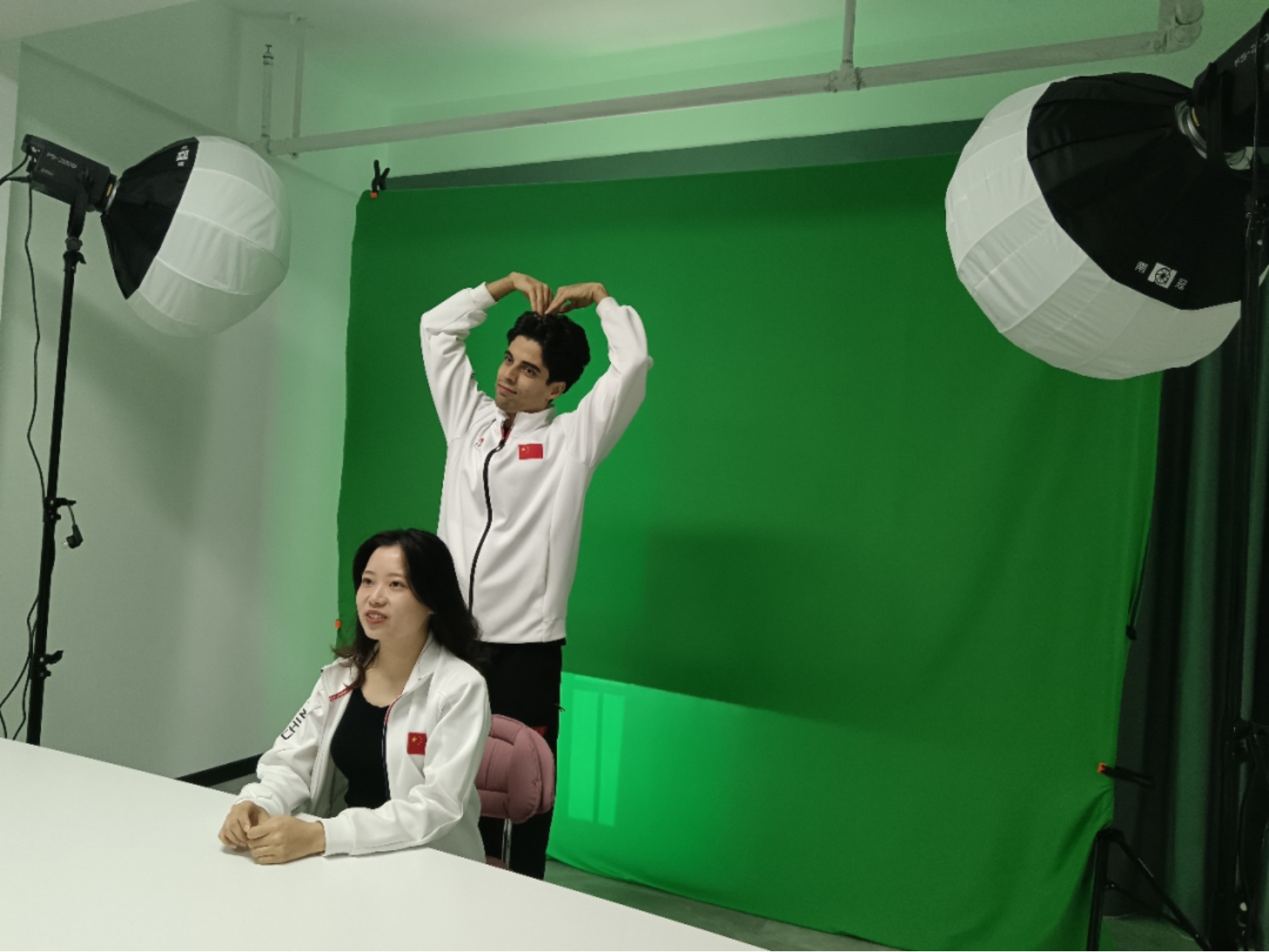 在滑县电视台演播大厅,电视台工作人员帮助选手们进行演讲指导、背景制作及实战演练,力争在汉字大赛取得优异成绩。