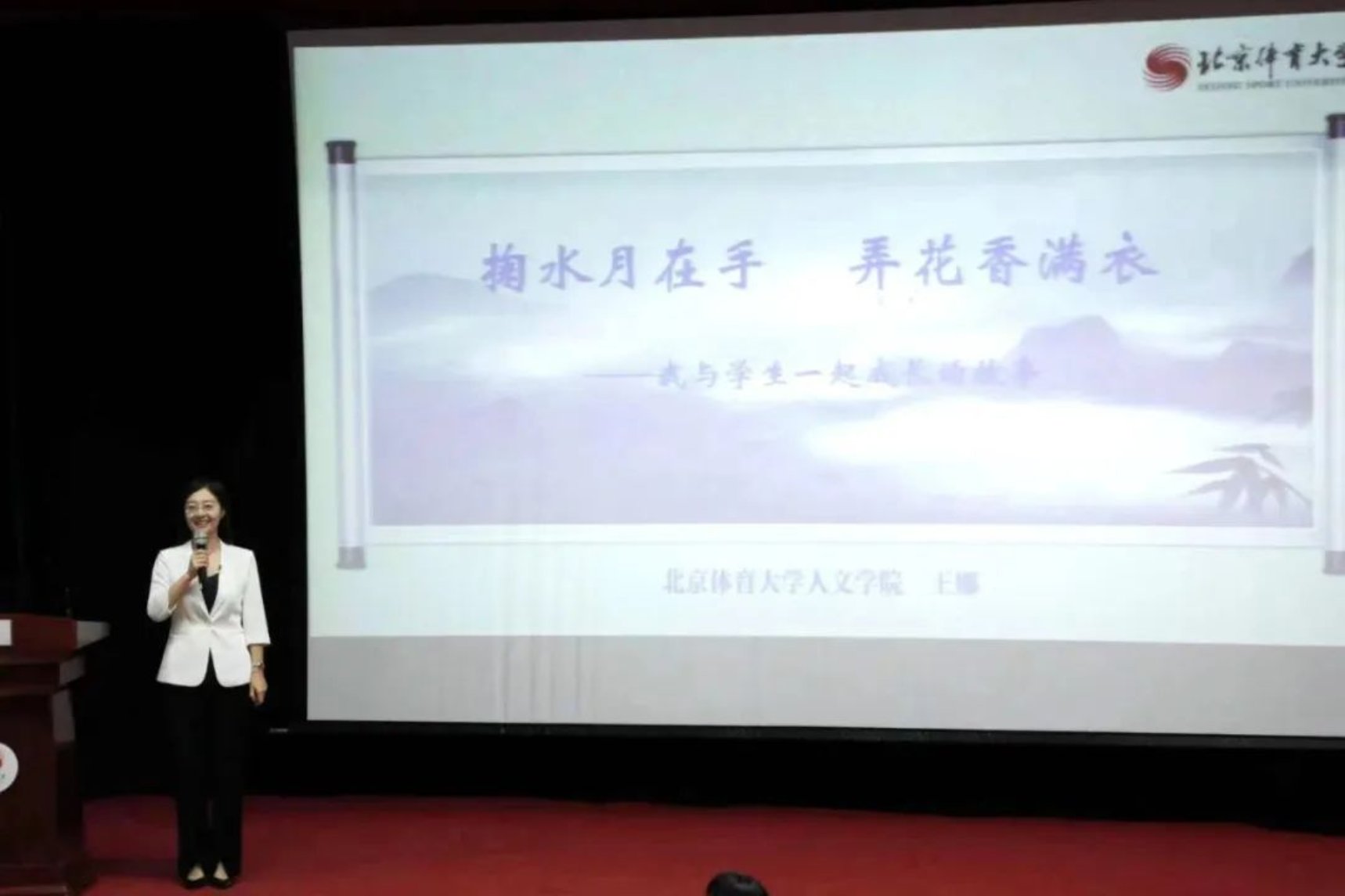 王娜老师深情讲述了作为一名中文教师,如何以中国文化为本,以“体”为用,养根俟实,与员工一起诗意成长的故事。从教十六年来,王老师坚持“莫问收获,但问耕耘”,以中华优秀传统文化为根,厚植员工文化底蕴,引导员工做饱读诗书的体育人、做富有创新思维的体育人、做甘于奉献祖国的体育人、做具有健全人格的体育人。