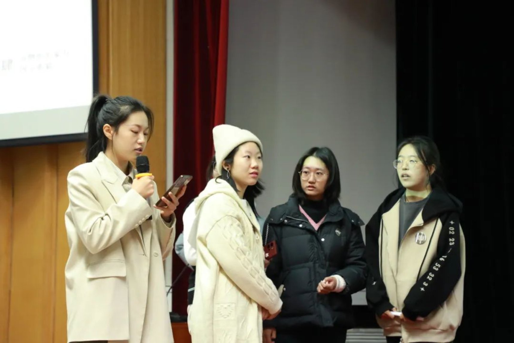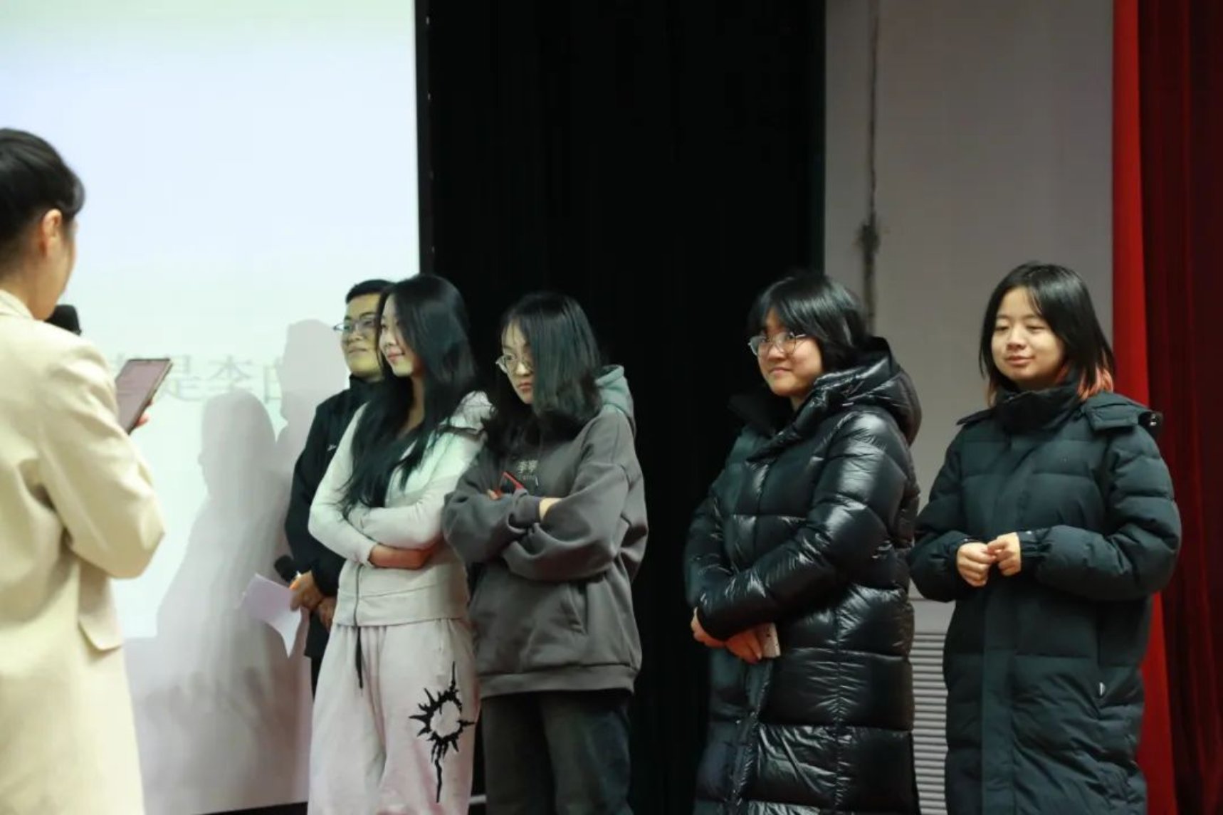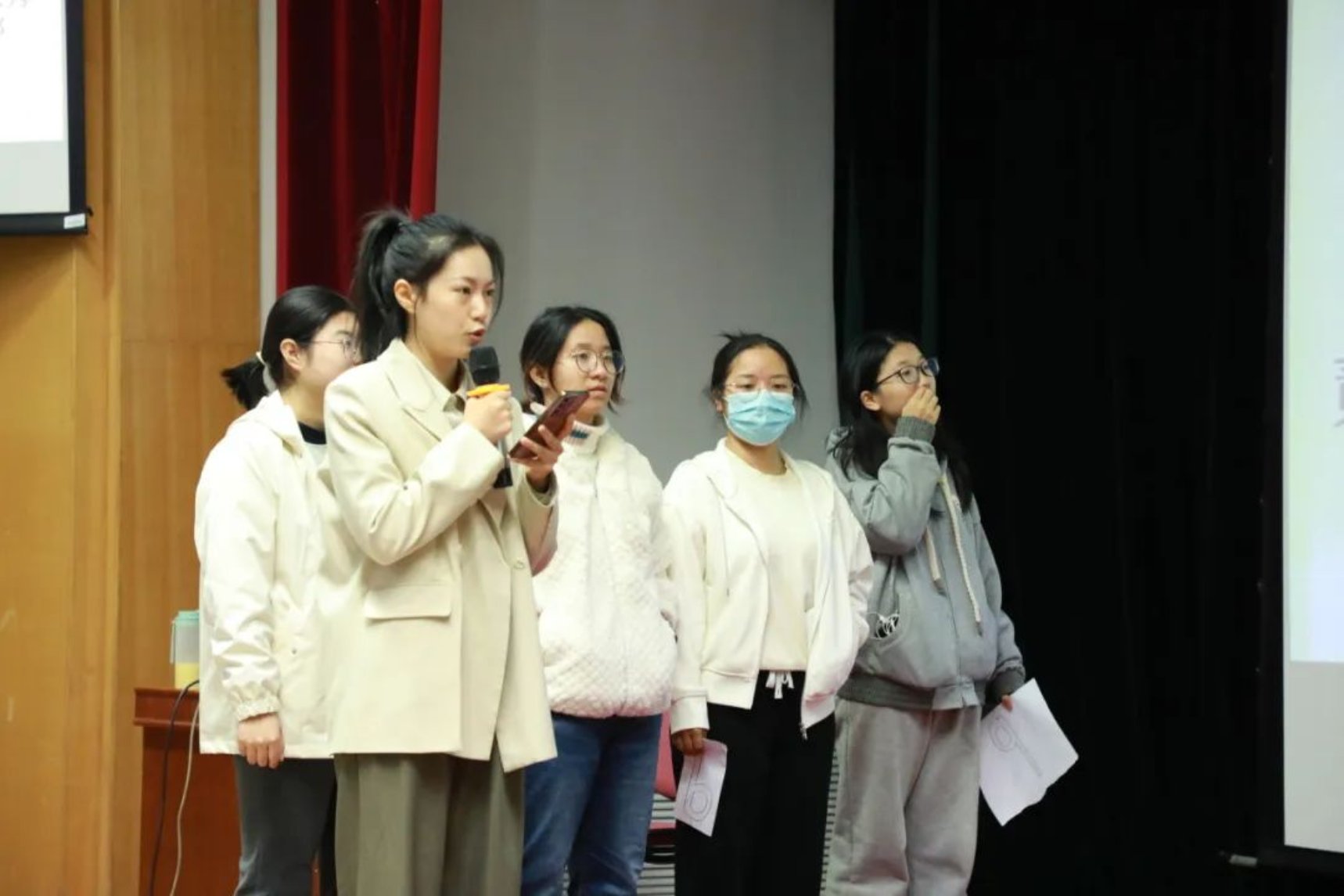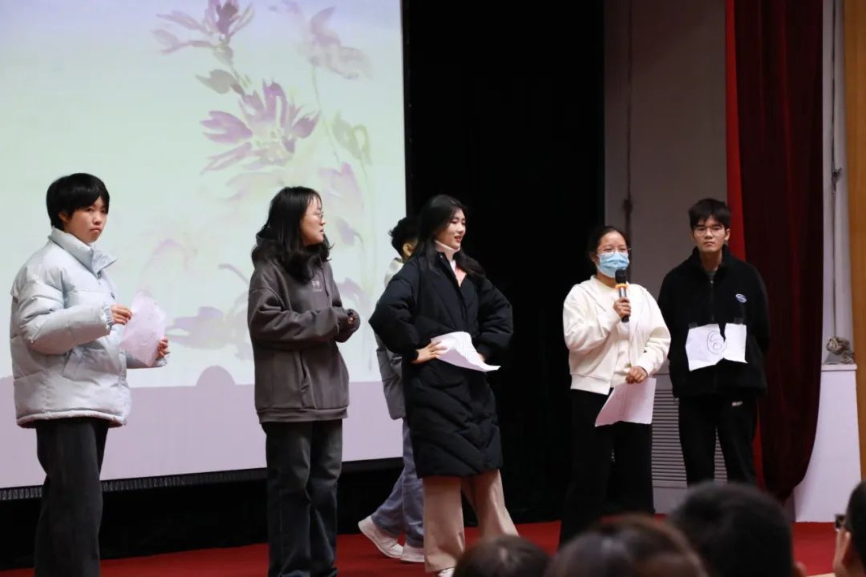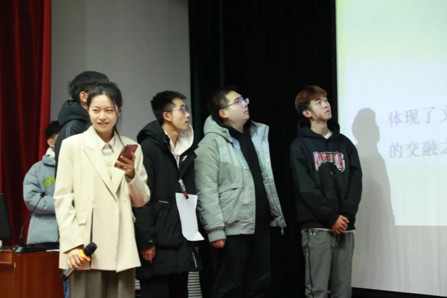 各个参赛组派出代表抽签,参赛者从所抽到诗句的最后一个字开始接龙,可以同字,也可以同音,答出一句加一分。在这轮比赛中,同学们纷纷发力,展示出自己惊人的诗词储备量,斩获不少的分数。台上同学们精彩的表现不仅让台下的同学们惊叹连连,更是赢得了评委们热烈的掌声,现场的气氛达到了高潮。