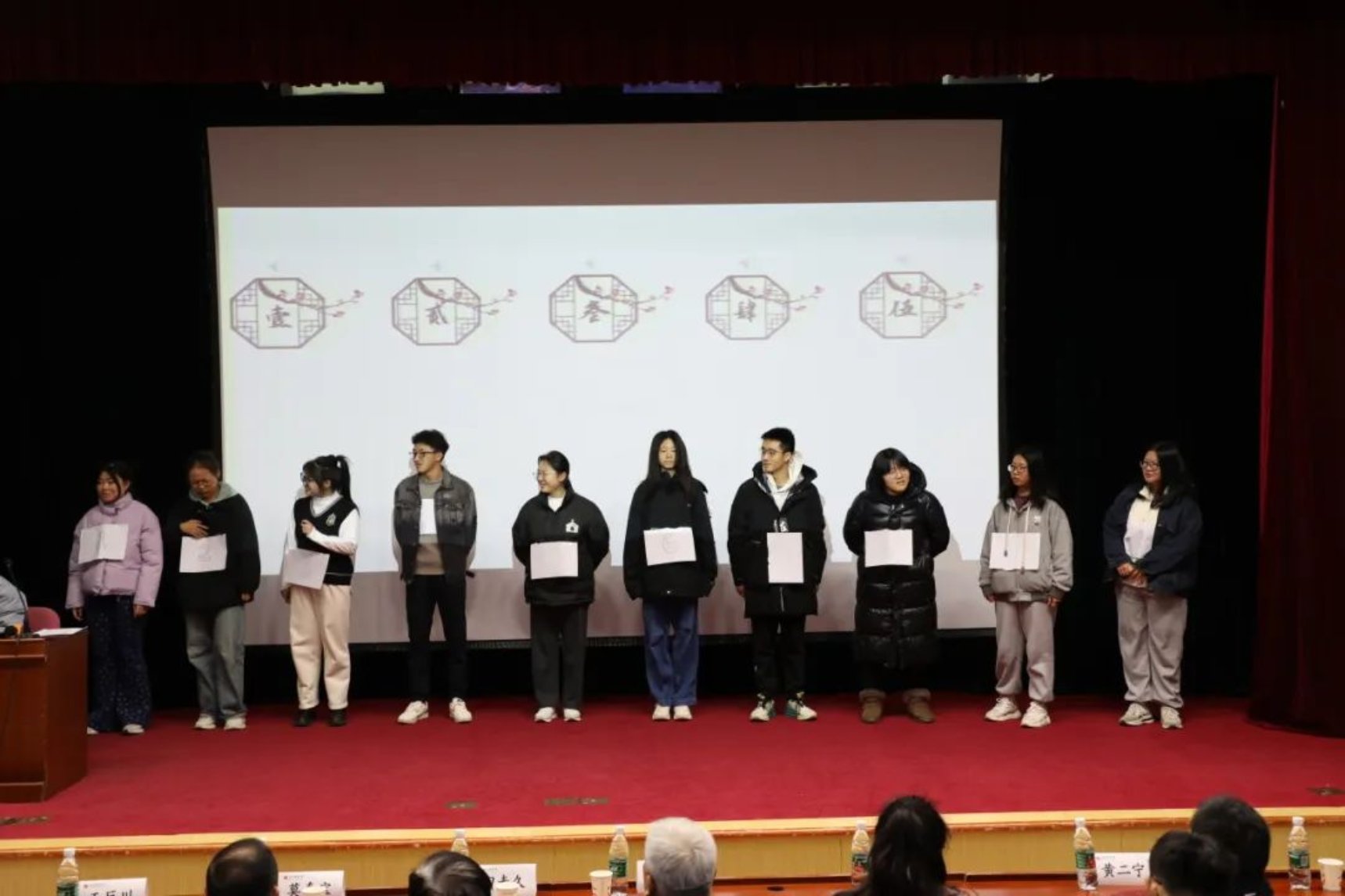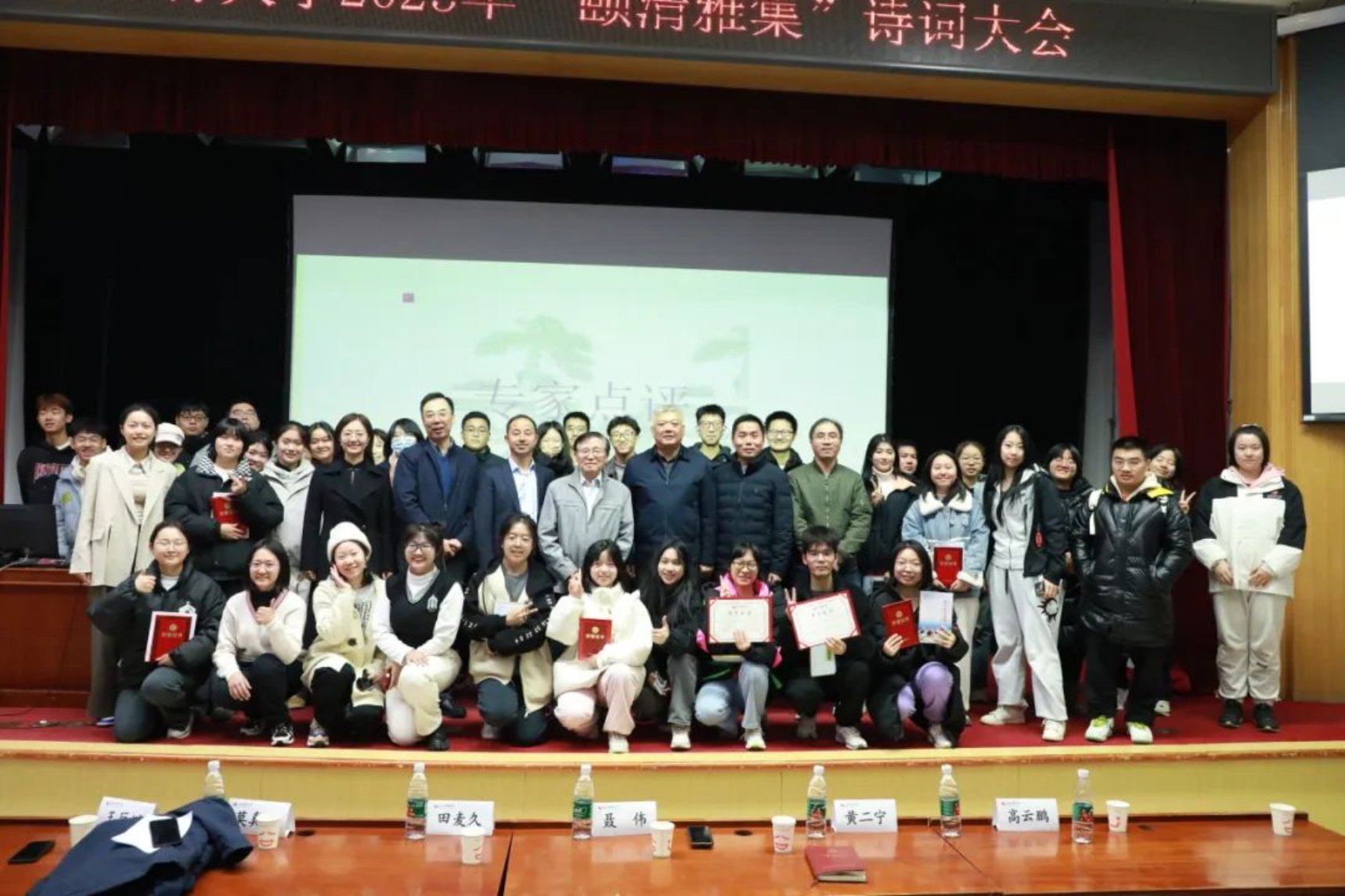 经过激烈角逐,最后评出了本届诗词大会的状元奖、榜眼奖和探花奖。田麦久先生、聂伟副部长、莫真宝老师分别为获奖同学颁奖。获奖名单如下: