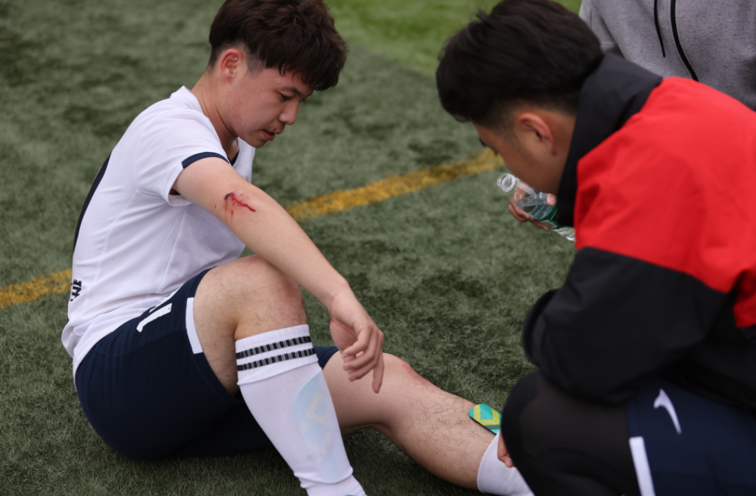 激烈的比赛中,前场核心丁嘉豪奋力逼抢、控球,高强度对抗让膝盖伤口不断流血,被裁判强制要求下场进行清理。李相东换下丁嘉豪,但裁判的要求打乱了人文男足的战术布置,球队逐渐走向被动。