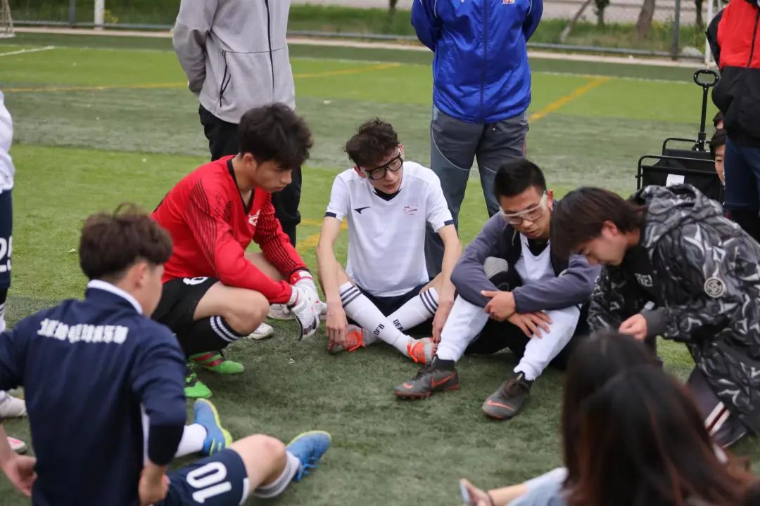 在这个气氛有些沉郁的下午,大战启幕,人文男足像往常一样聚在了一起。不同以往的是,队长温俊琪带领大家回顾了建队以来的心路历程。从第一场的紧张忐忑,从目标是“进一球、得一分、赢一场”到逐渐轻车熟路,到一路势如破竹杀入半决赛,人文男足没有包袱,也不需要有任何压力,重要的是能够享受比赛、享受足球的乐趣。