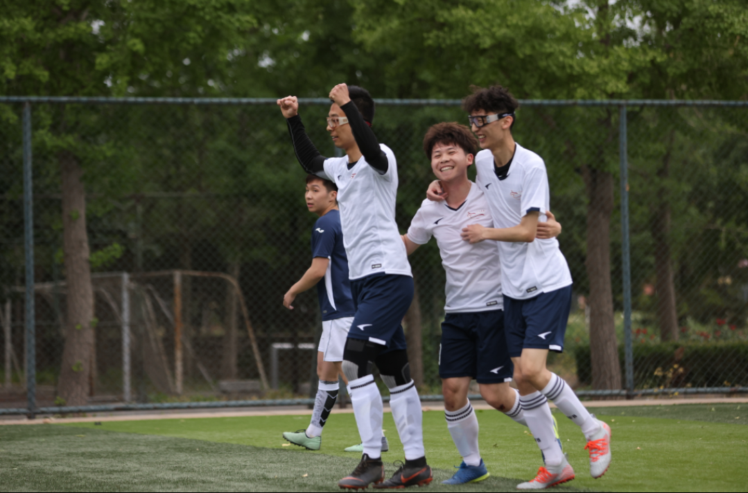 的确如此,自建队以来,人文男足保持着周中训练,周末比赛的“作息”。每到周末比赛日,在啦啦队的呐喊声中踏上洒满阳光的绿茵场(然而比赛日当天没太阳),成为了很多男足队员的习惯。花式庆祝、商业互吹和比赛后的推送也成为每一周的保留节目。也许为体育强国作建设的目标离我们太远,但当足球融入到我们的生活中时,也会让生活充满未知、充满动力,这大概就是足球的魅力、体育的魅力吧。