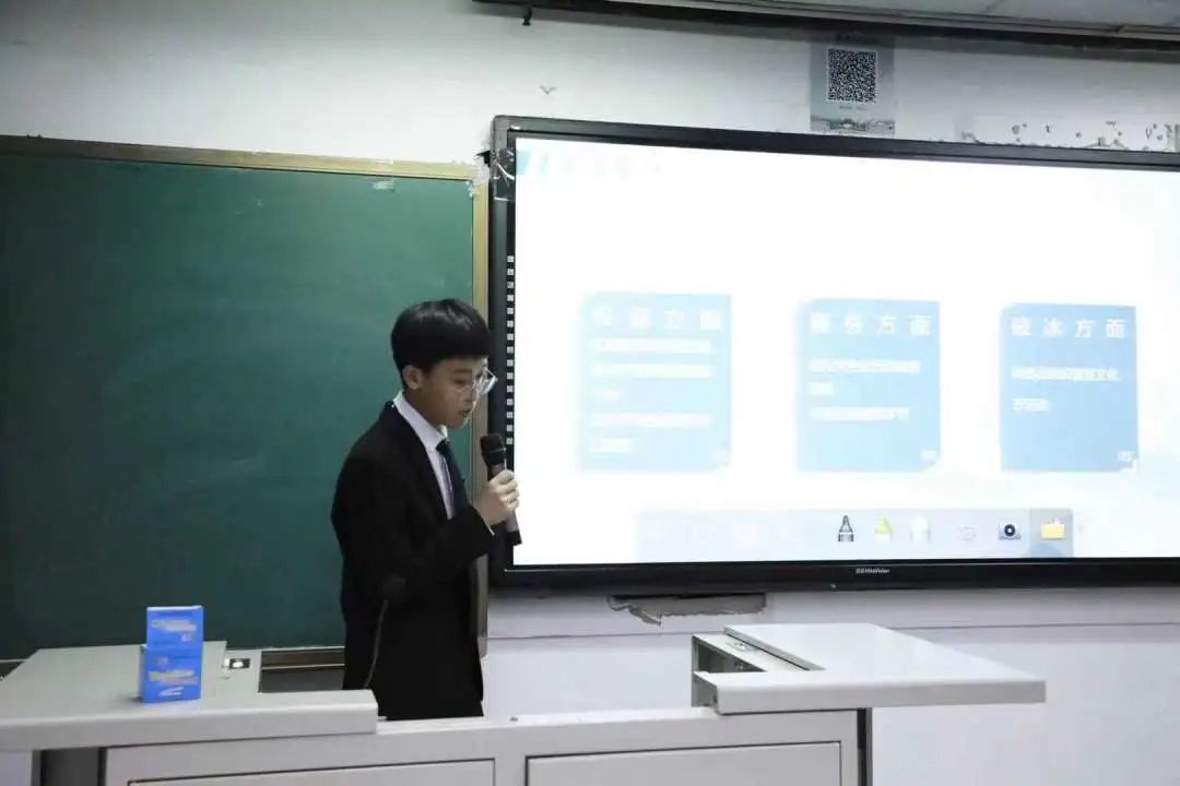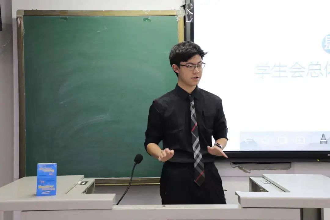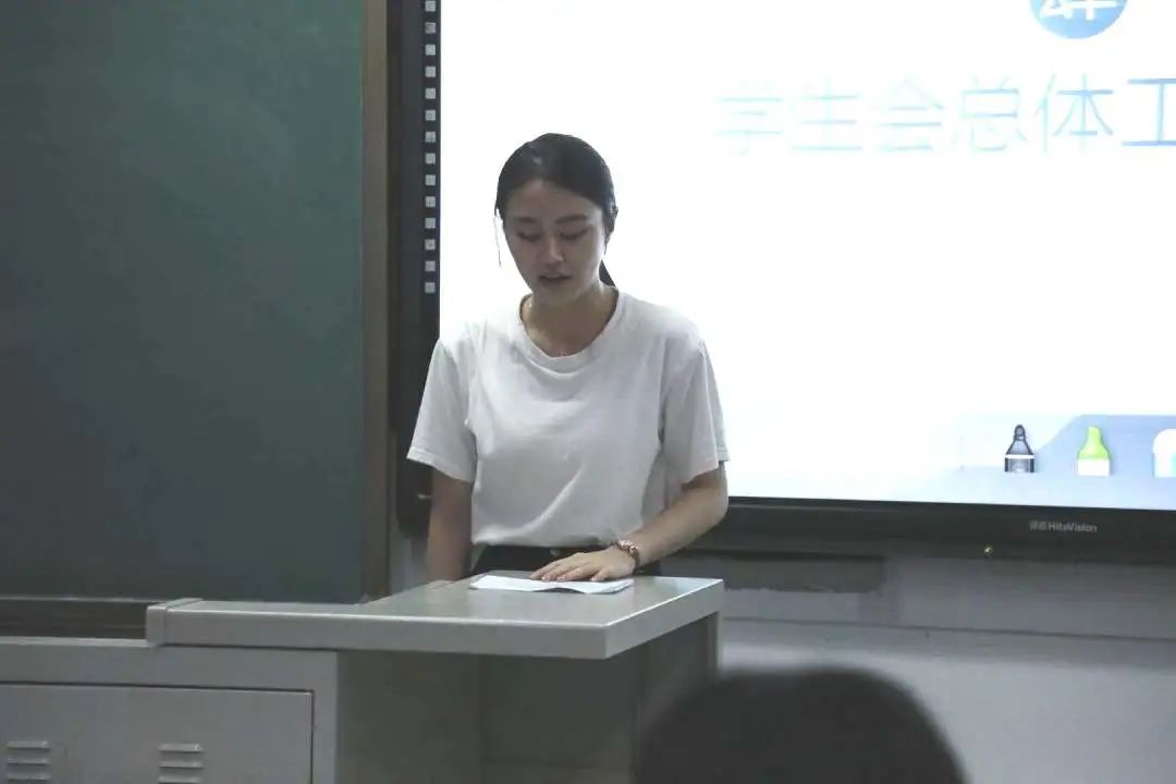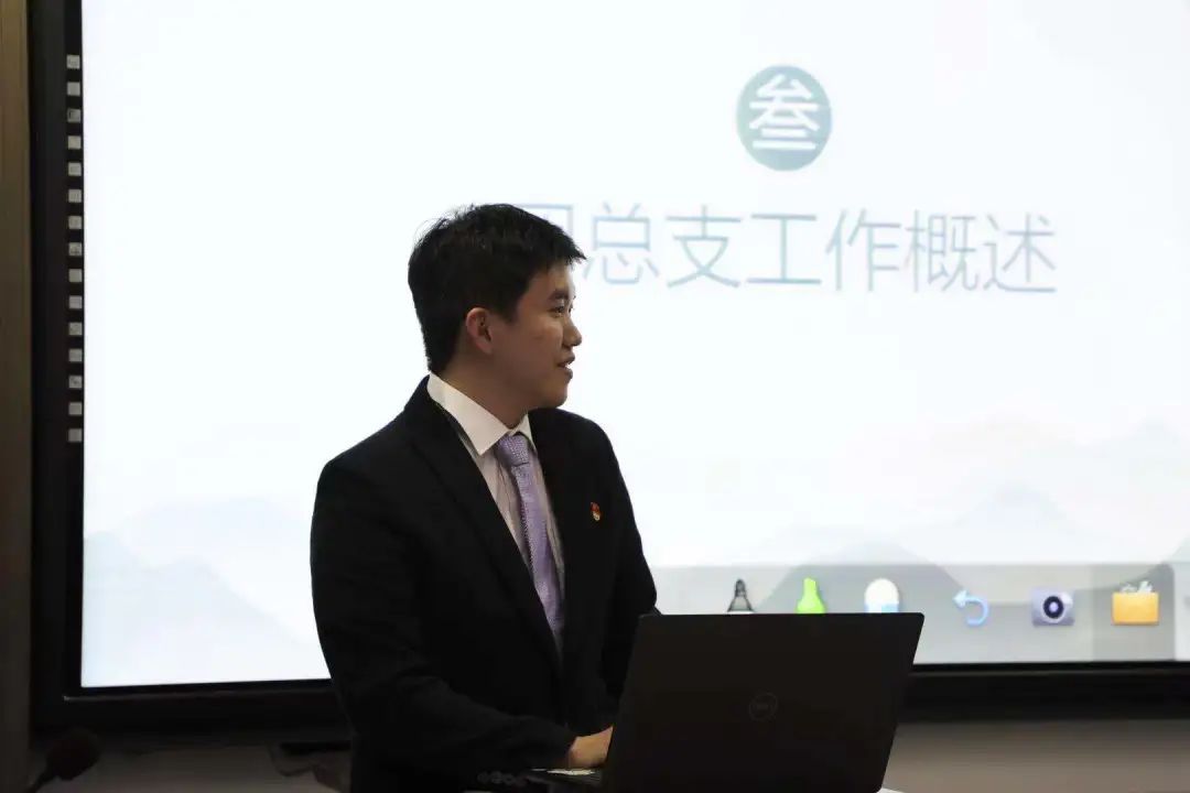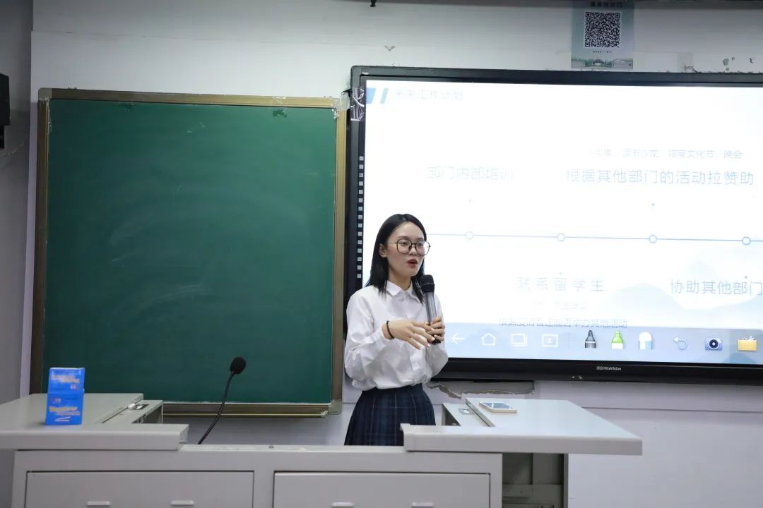 会议的第三项议程,由19级汉语国际教育专业的温俊琪学长进行团总支工作概述。学长以幽默风趣的自我介绍开场,活跃了现场的气氛,让新成员了解团总支的大体任务:发展党员、撰写党组织申请材料等。同时介绍了新一年的工作:组织团课党课学习、配合学校团委完成下派任务和要求等。
