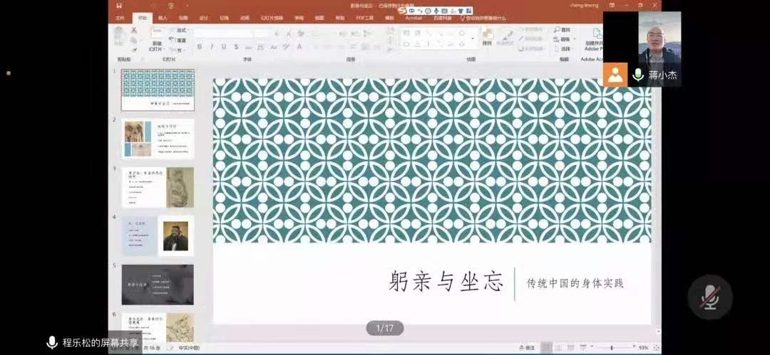 蒋小杰老师主持开场后,大家对程乐松老师“线上”到来表示热烈欢迎。