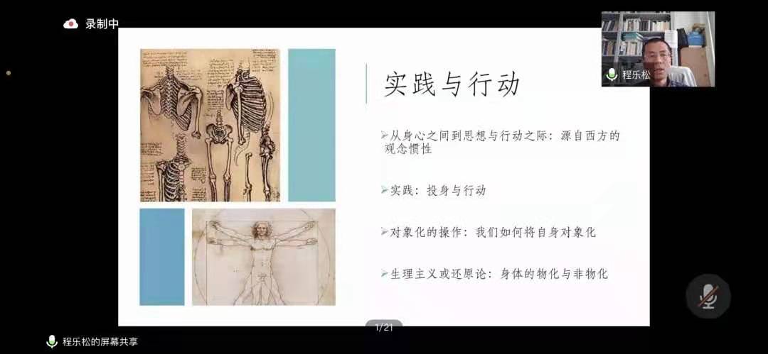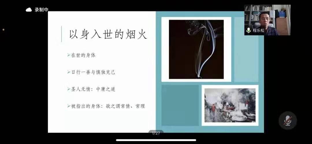 2020年11月27日早晨十点,人文论坛第十二期讲座在腾讯会议顺利召开。本期讲座由北京大学哲学系教授、博士生导师程乐松教授担任主讲嘉宾,讲座题目是“躬亲与坐忘——传统中国的身体实践”。