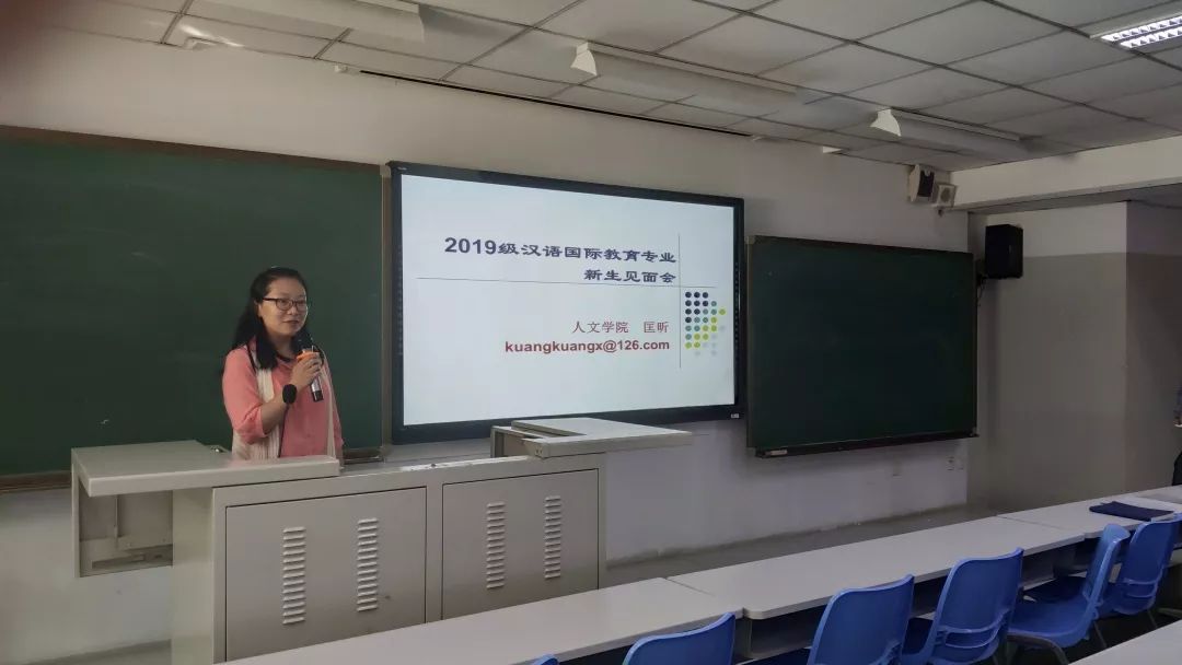 随后语文教研室负责人之一匡昕老师为大家详细介绍了汉语国际教育专业的相关信息,包括专业简介,课程概览等,给新来到北体的员工一个清晰的指导,让大家对汉教更加了解也更有学习的信心和动力。更对大家最关注的就业升学问题给出了专业的指导意见。最后,老师诚挚地给大家提出了对于汉语国际教育专业的学习要求,同时希望大家成为有态度、深度、广度、温度的复合型、应用型、国际化的人才。