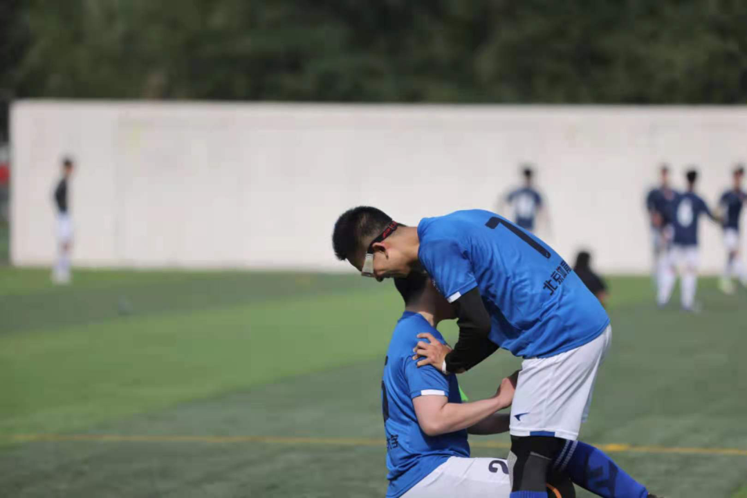 15:39分,下半场开始。比赛一开始,便继续延续上半场的焦灼态势。双方你来我往,却是没有得分进账。比赛来到了第33分钟,马跃成功守门,温俊琪、潘俊龙迅速接过马跃的传球,传导进攻,却在中场被对方19号拦截,踢出场外化解。我方获得角球机会,丁嘉豪、曾云帆配合默契,差点进球。而对方3号为防守而犯规,被裁判罚了一张黄牌。第40分钟,对方3号球员对丁嘉豪进行了铲球拦截,丁嘉豪也没想到自己居然在对手的帮助下被迫完成了前空翻的动作。这次的拦截防守,有人欢喜有人愁,丁嘉豪并没有受伤,而对方3号却崴伤了脚,被拉下场进行紧急卫生处理。(这段哪里不行就删哪里吧/手动狗头/)
