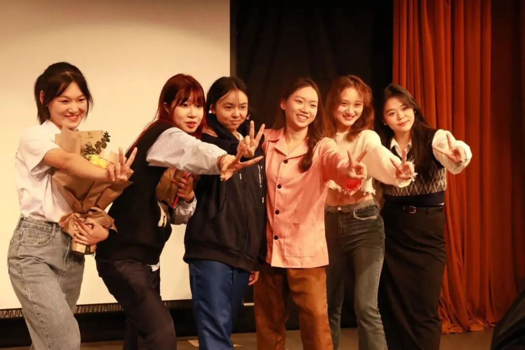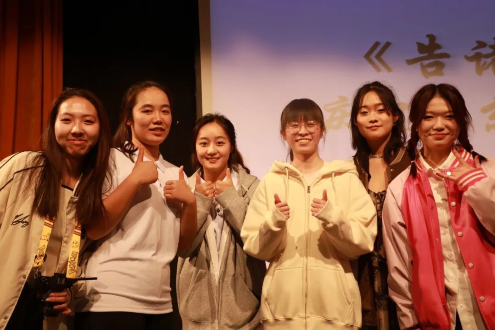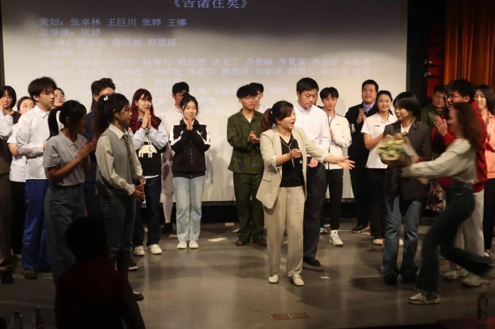 话剧表演尾声,主要参演人员齐声朗诵由必威betway王娜老师和黄兰花老师共同创作的诗歌《别停下来》。