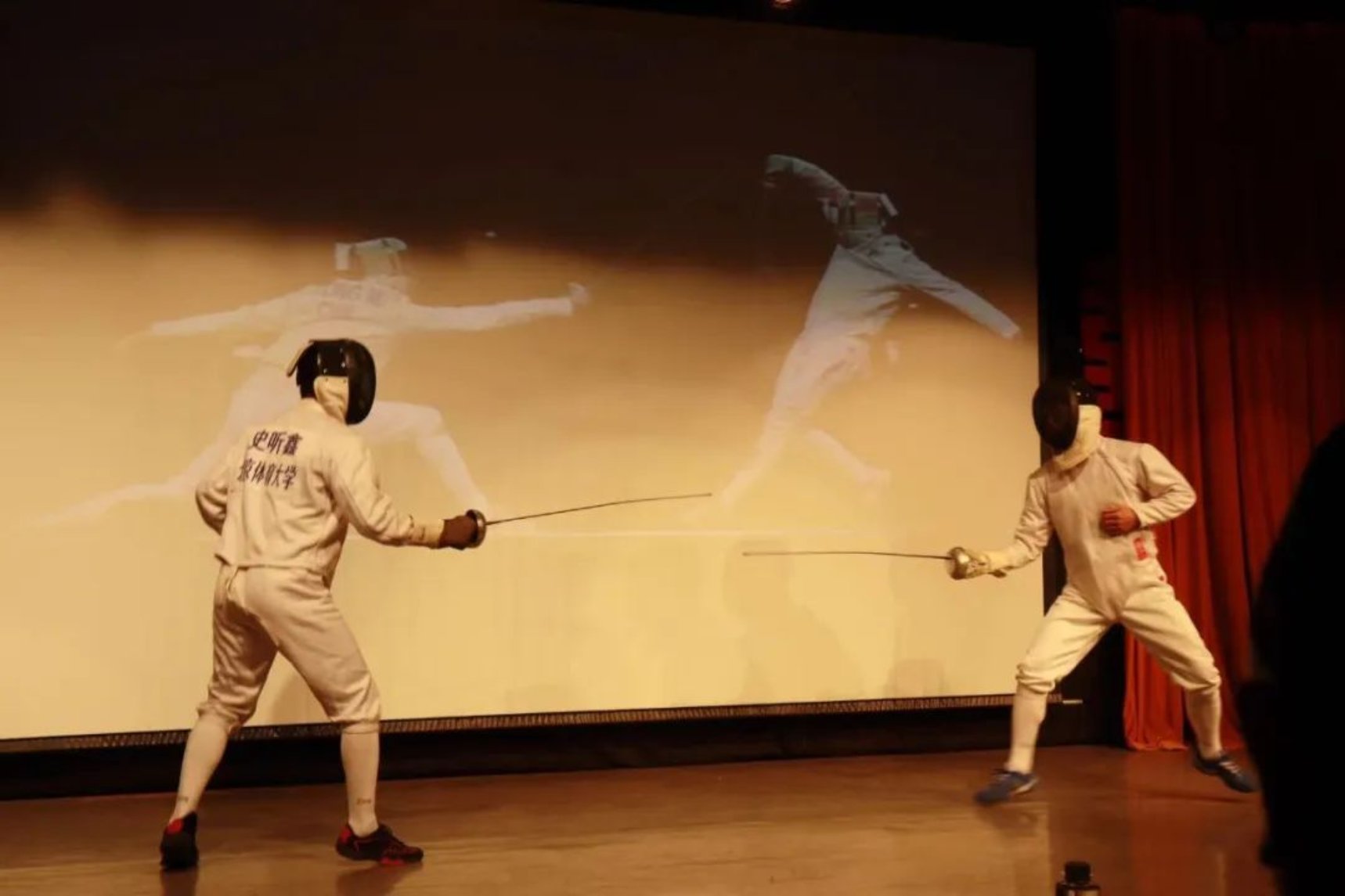 同学们听说1953年11月天津有“全国少数民族传统体育运动会”,非常兴奋,这时武术学院的同学上台展现了一段精彩绝伦的武术表演。