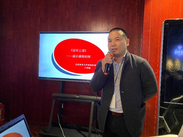 第二位进行汇报的是来自竞技体育学院的跆拳道冠军卢秀栋教授,他和李娜老师合作开设的课程是“冠军之道”,卢教授主要和大家分享了自己在讲授通识课程的过程中所做的一些探索和心得体会,在强调授课技巧的同时,更是倾力探寻讲好中国竞技体育故事的方法,认为通过竞技体育讲通识教育,就应该从关注人们的身体转向点燃人类的灵魂,进而追求人生价值和意义,帮助北体大培养最优秀的体育领袖。