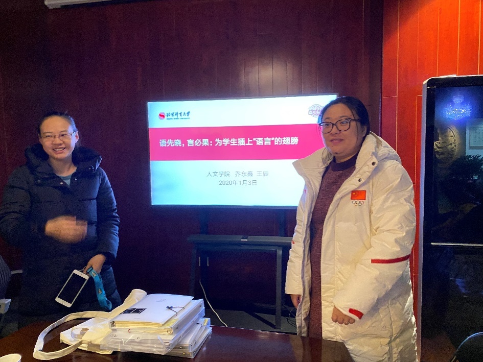接下来由乔东鑫老师和王辰老师汇报“语言与生活”课程,,她们的题目是“语先晓,言必果:为员工插上“语言”的翅膀”。两位老师分别通过精准而诗意的语言以及生动的案例展示了这门课程的目的、内容、方法和意义。该门课程采用了课堂讲授和小组讨论相结合的形式,除了“引进来”,更“走出去”到博物馆参观甲骨文展,借用媒体资源紧密结合当下最新话题做现场分析,增加了趣味性和实用性,提高员工的实际运用能力,并通过专业而形式多样的汉语学习,增进了员工们对本国文化的了解和热爱。